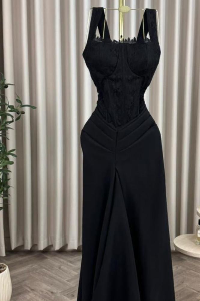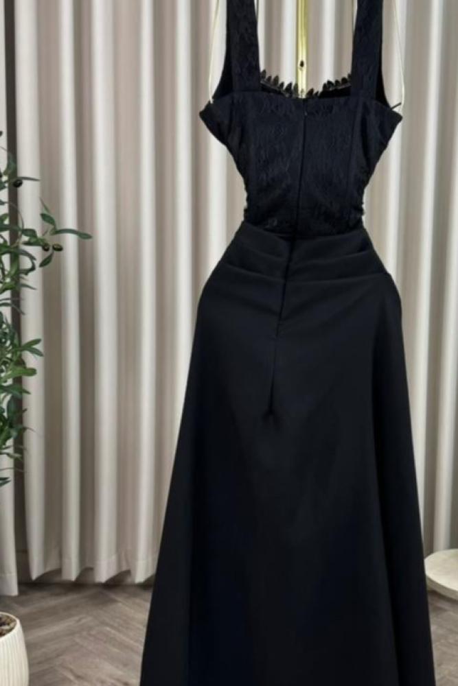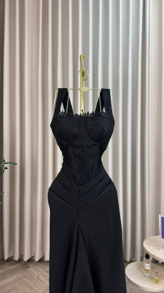فستان اسود بسيط بتصميم دانتيل مع قصة باربي كلووش كت يمنحك إطلالة أنثوية ناعمة تجمع بين الرقي والبساطة ومناسب للسهرات والمناسبات الخاصة