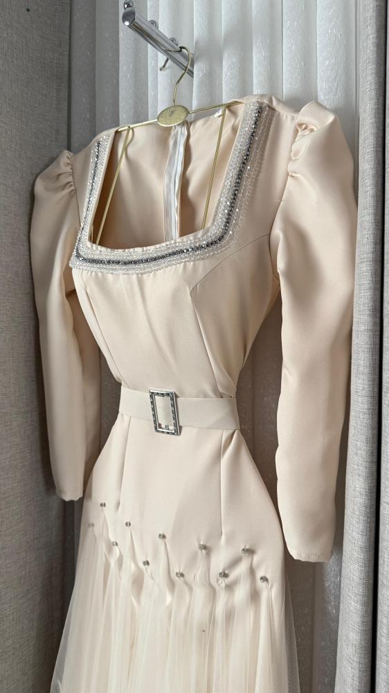قصة الفستان بسيطة وجذابة مع تفاصيل ناعمة تعكس الذوق الراقي وتناسب مختلف الأوقات.