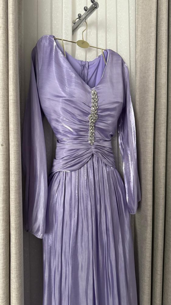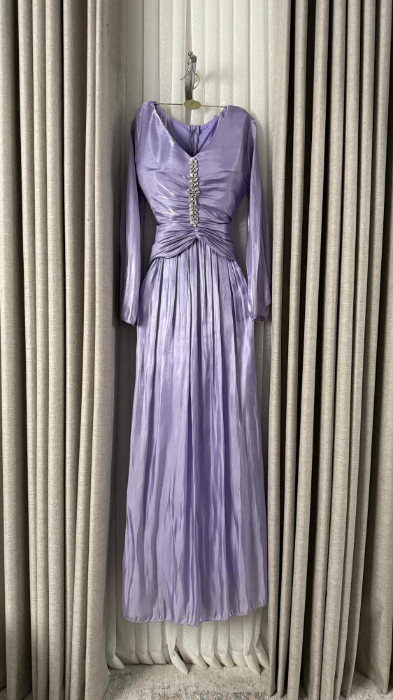 يتميز بتفاصيل جذابة وقماش خفيف ينساب برقة، ليكون خيارًا مثاليًا للمناسبات الخاصة خلال فترة الحمل.